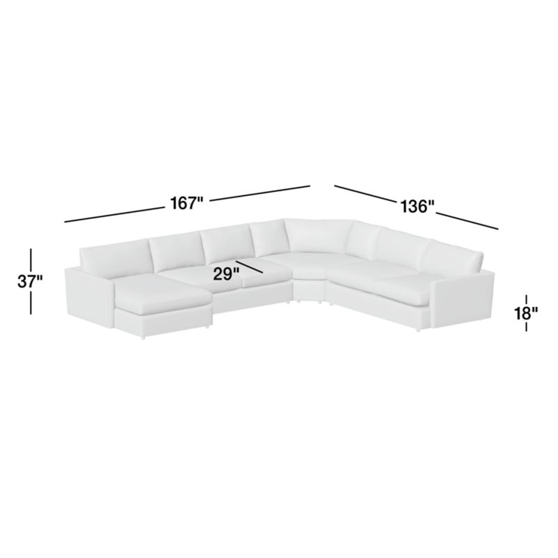 Lounge Deep 4-Piece L-Shaped Wedge Sectional Sofa with Chaise Lounge25height167width136depthMeasurements are in inches.