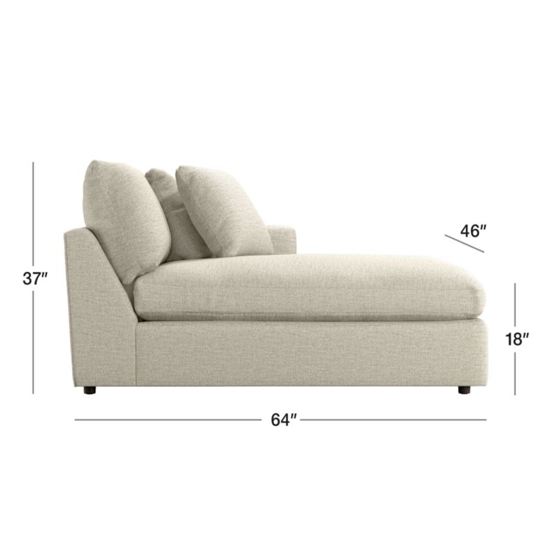 Lounge Deep Right-Arm Storage Chaise Lounge Sectional Piece25"Hheight46"Wwidth64"DdepthMeasurements are in inches.