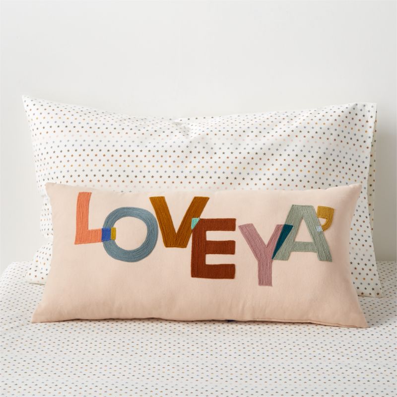 From naptime to storytime, kids will love cuddling up with our "Love Ya'" Throw Pillow. The supportive, loving message is embroidered in warm earth tones on a pastel peachy-pink cotton canvas shell. Style it with any of our bedding collections for an elevated space that's truly theirs.