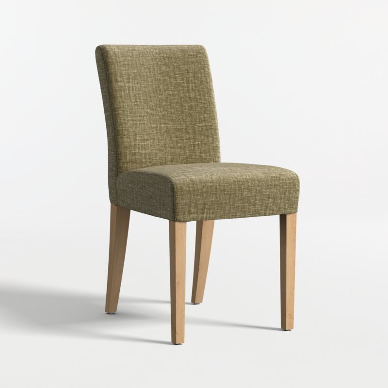 Designed for comfort with design-conscious style, our Lowe dining chair is meant for tableside lingering. Fabric upholstery tailors the cushioned tight seat and back, partnering perfectly with sustainably sourced hardwood legs.