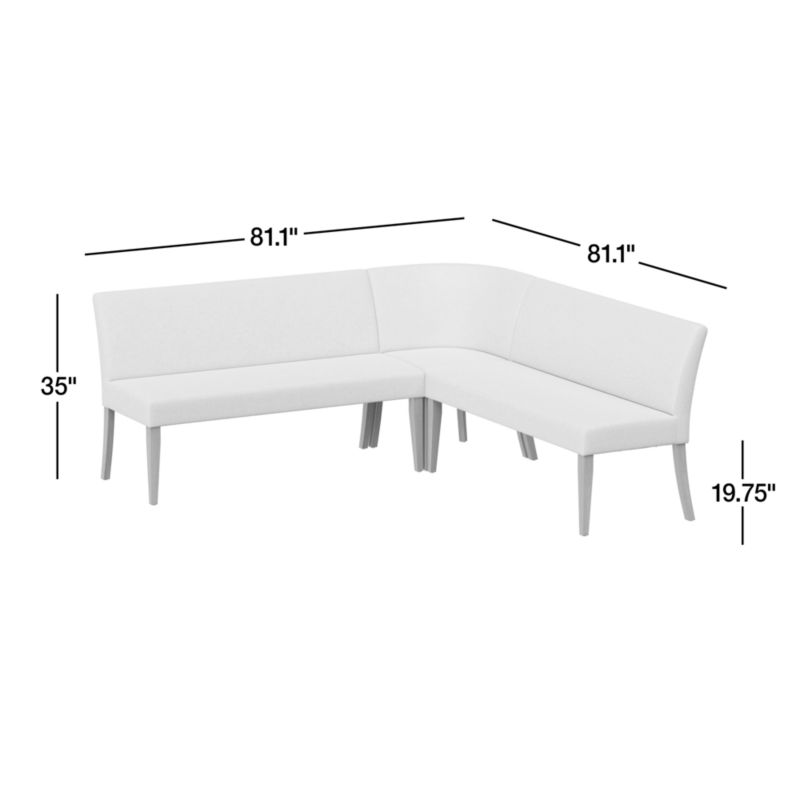 Our Lowe chair inspires a banquette-style modular seating collection with the same sophisticated lines and linger-worthy comfort that has made this customer favorite a contemporary classic. An ivory linen-blend fabric tailors the two benches and corner chair with tight seats and backs that partner perfectly with the slim natural-toned beechwood legs. The three pieces create an L-shaped banquette that seats five and fits neatly against a wall or in a corner. Keep it intimate or expand your options by combining the bench combination with other pieces in the Lowe banquette seating collection.