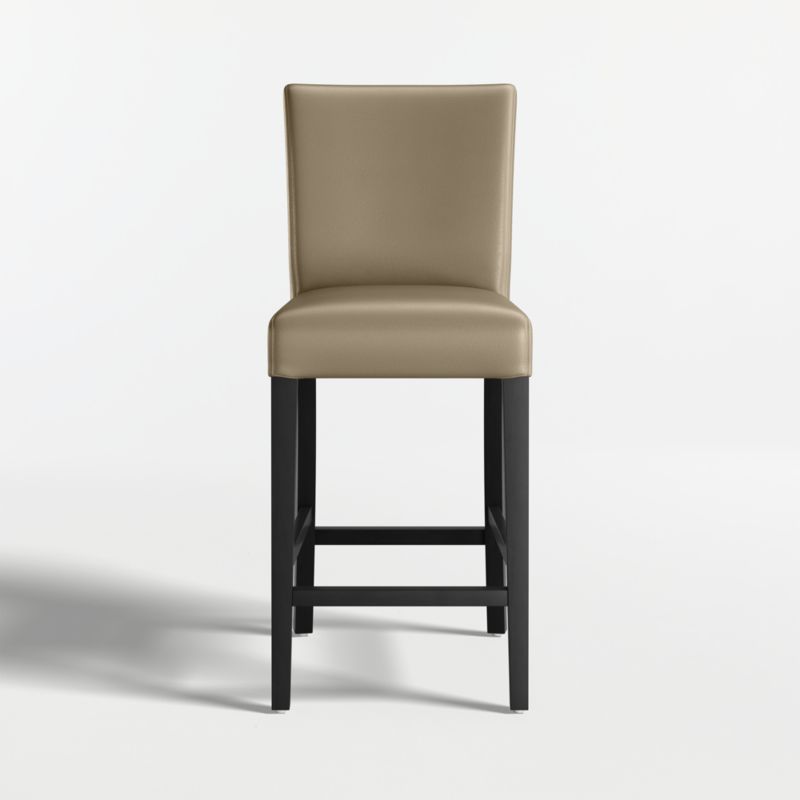 With a roomy cushioned seat and back, our Lowe counter stool is designed for lingering at a kitchen counter or high dining table. Sleek leather tailors the cushioned, tight seat in sophistication, pairing perfectly with slim hardwood legs. Our Lowe collection's many seating options in an array of coordinating leathers and fabrics mix and match for the perfect look.
