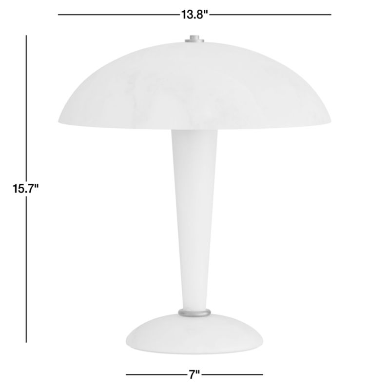 Our sculptural Lucca lamp showcases the gorgeous nature of alabaster. The translucent stone shapes the graceful curves—we love the way the wide dome shade echoes the silhouette of the base—and glows warmly when illuminated. Accented with gleaming, burnished brass-finished details, this exquisite table lamp is pure glamour.