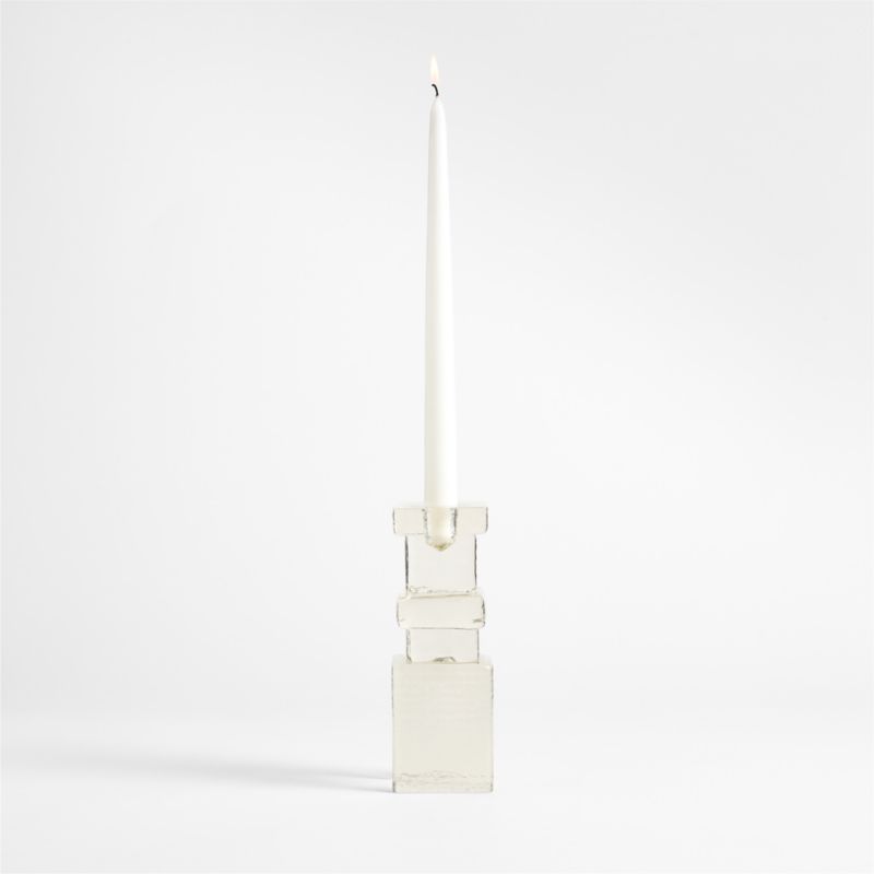 The unexpected combination of geometric shapes and organic texture give our Lumen candlestick fascinating character. Skilled artisans press glass by hand into a stacked silhouette with ethereal beauty. Pairing beautifully with the other cast glass pieces in our Jeremiah Brent collection, the taper holder instantly adds collected-over-time depth to your candlelight collection.