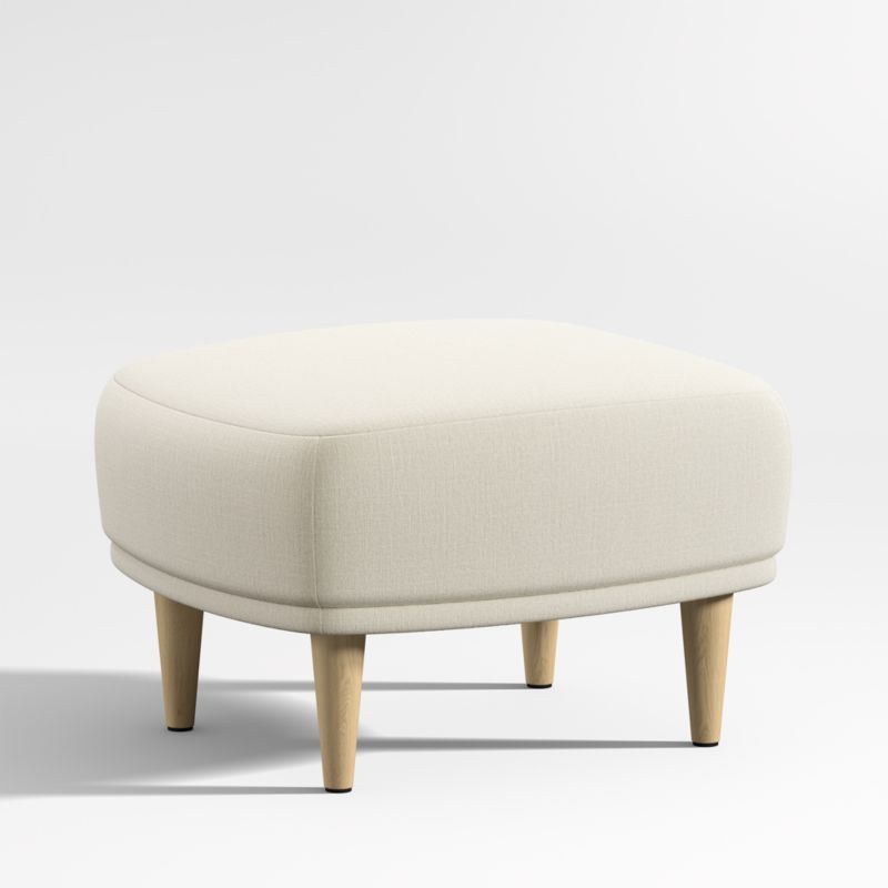 Our Lyric ottoman features soft curves, crisp tailoring and a petite footprint. The thick rectangular cushion is firm and supportive, resting on tapered wood legs for modern, go-with-anything style. The natural-colored upholstery easily adapts to any setting, from nursery to big-kid room to shared family space. Pair it with the Lyric swivel glider chair for the ultimate resting spot.