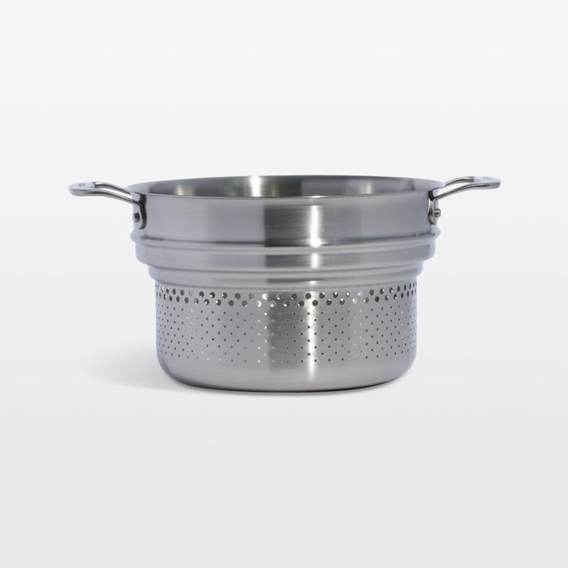 Italian-made stainless steel cookware from Made In brings professional-level quality and durability home. This stainless steel insert makes it easy to strain pasta, vegetables, grains and more the instant they've cooked to perfection. And since you're lifting the insert out of the boiling water, precious pasta water is saved automatically for emulsifying sauces. This lightweight strainer fits perfectly in six- and eight-quart Made In stockpots and cleans up easily in the dishwasher.
