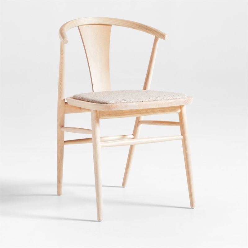Malin reimagines the classic modern wishbone chair with graceful curves and attention to comfort. Made of solid ash, the dining chair takes a refined stance on tapered legs with a rounded back centered by a clean-lined splat for a supportive stay. The seat is inset with a cushion covered in a natural flecked wool-blend fabric that perfectly complements the chair's whitewashed oatmeal finish.