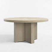 Settle into the enduring coastal style of Mallorca. Designed to last season after season, the dining table and chair set showcases the long-lasting durability and natural beauty of eucalyptus wood, which has been painted and wirebrushed to resemble naturally weathered driftwood. The round dining table features a round slatted top on a sculptural X base, pairing perfectly with the modern lines and bold geometry of the dining chairs. Soft-yet-supportive cushions are covered in outdoor-friendly ivory fabric or your choice of colors in performance Sunbrella fabric.