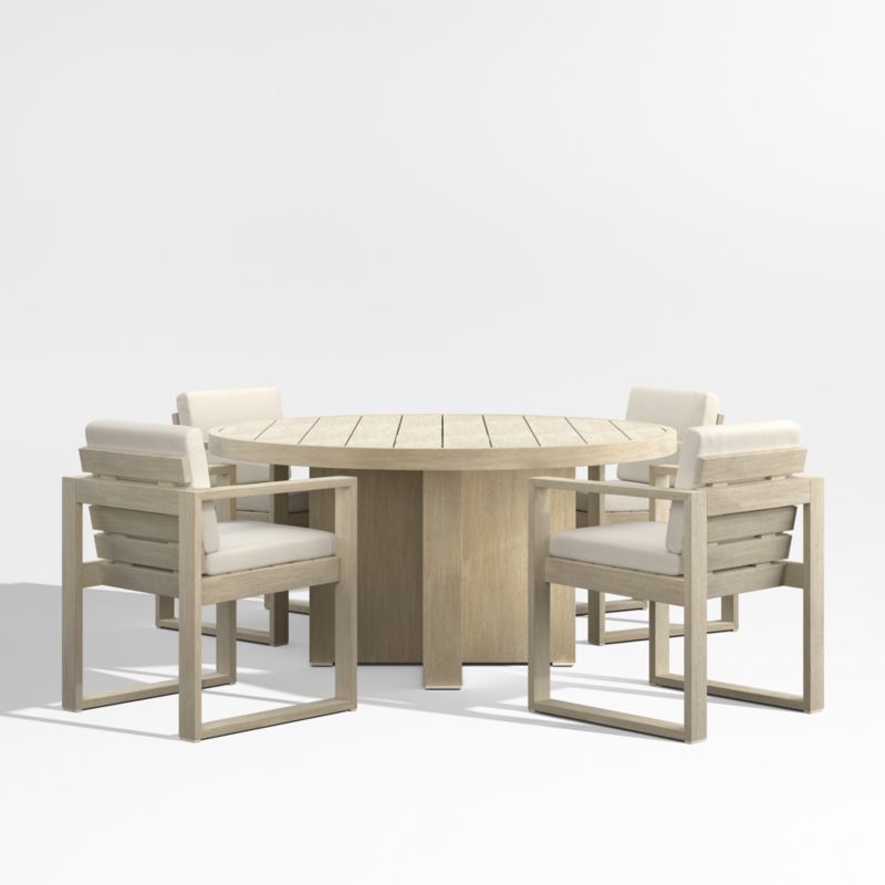 Mallorca 60" Wood Outdoor Dining Table Set with Ivory Cushions