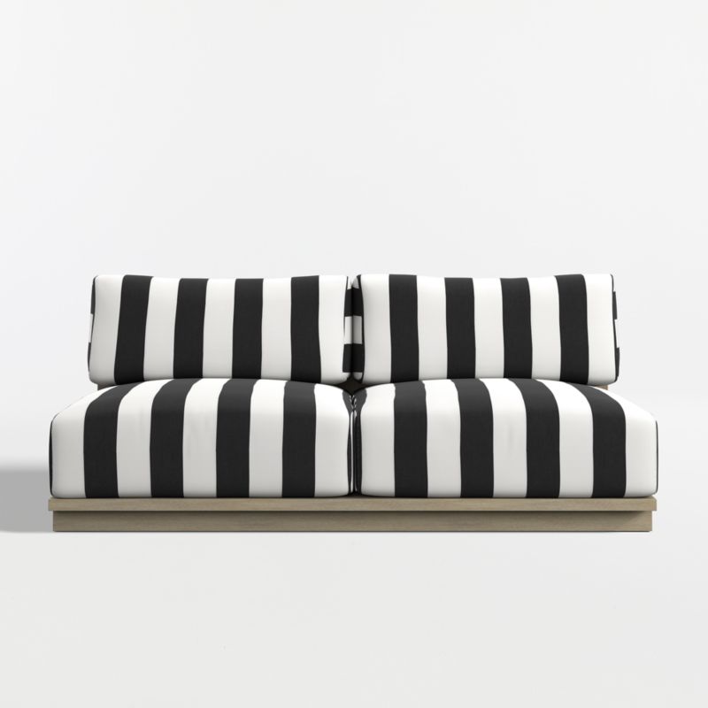 Mallorca 68" Wood Armless Outdoor Sofa with Black and White Cabana Stripe Sunbrella ® Cushions23.8"Hheight68"Wwidth37"DdepthMeasurements are in inches.