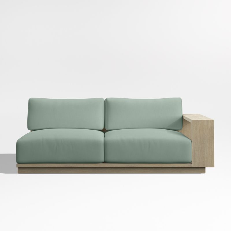 • View Mallorca 76" Wood Right-Arm Outdoor Sofa with Canvas Spa Blue Sunbrella ® Cushions - image 1 of 4
