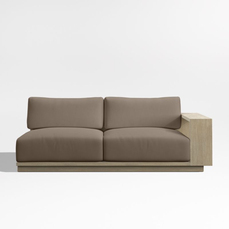 Mallorca 76" Wood Right-Arm Outdoor Sofa with Cast Shale Brown Sunbrella ® Cushions