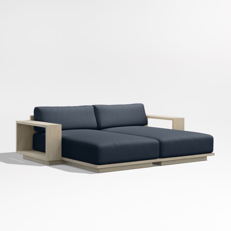 • View Mallorca 86" Wood Double-Chaise Outdoor Daybed with Canvas Navy Sunbrella ® Cushions - image 2 of 10