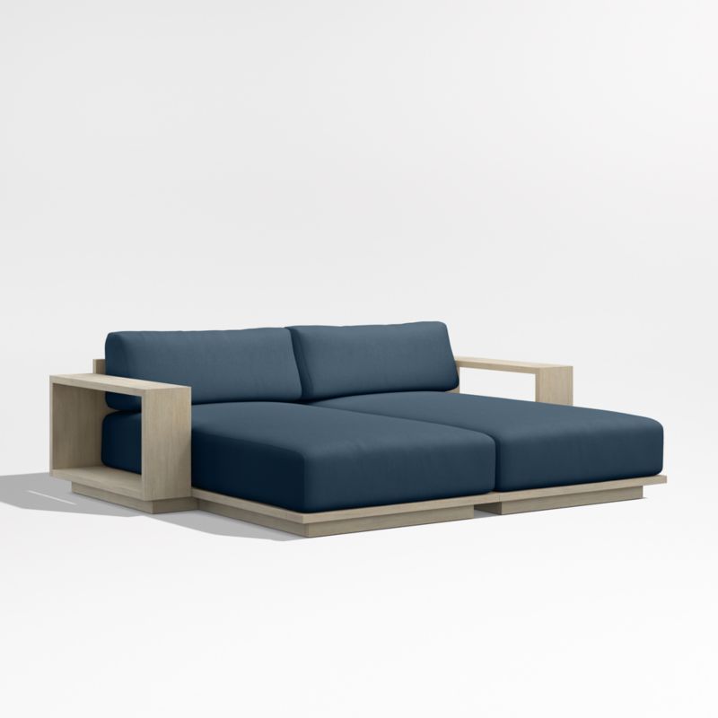 Mallorca 86" Wood Double-Chaise Outdoor Daybed with Cast Harbor Navy Blue Sunbrella ® Cushions