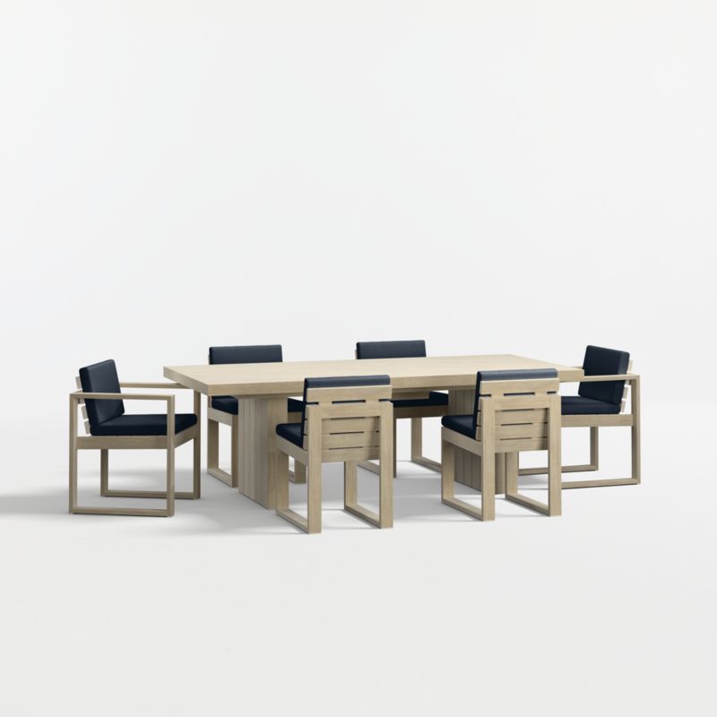 Mallorca 92"-114" Solid Wood Outdoor Extension Dining Table Arm and Dining Chair Set with Canvas Navy Sunbrella ® Cushions