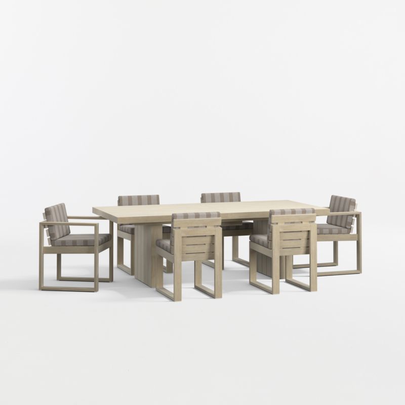 • View Mallorca 92"-114" Solid Wood Outdoor Extension Dining Table Arm and Dining Chair Set with Range Dune Stripe Sunbrella ® Cushions - image 6 of 10