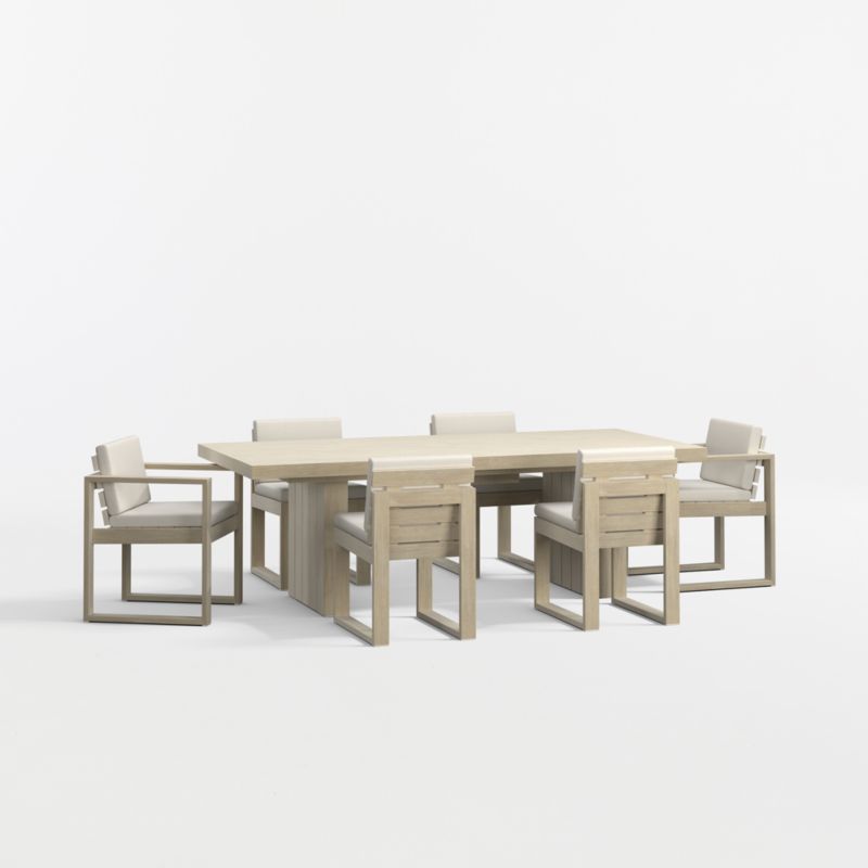 Mallorca 92"-114" Solid Wood Outdoor Extension Dining Table Armchair and Dining Chair Set with Ivory Cushions
