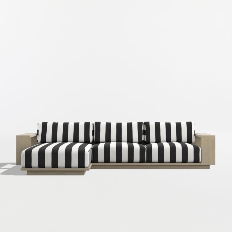 Mallorca Wood 2-Piece Left-Arm Chaise Outdoor Sectional Sofa with Black and White Cabana Stripe Sunbrella ® CushionsMallorca 86" Wood Double-Chaise Outdoor Daybed with Black and White Cabana Stripe Sunbrella ® CushionsMallorca Wood 2-Piece Right-Arm Chaise Outdoor Sectional Sofa with Black and White Cabana Stripe Sunbrella ® CushionsMallorca Wood 3-Piece L-Shaped Armless Outdoor Sectional Sofa with Black and White Cabana Stripe Sunbrella ® CushionsMallorca Wood 3-Piece L-Shaped Outdoor Sectional Sofa with Black and White Cabana Stripe Sunbrella ® CushionsMallorca Wood 4-Piece Left-Arm Chaise U-Shaped Outdoor Sectional Sofa with Black and White Cabana Stripe Sunbrella ® CushionsMallorca Wood 4-Piece Right-Arm Chaise U-Shaped Outdoor Sectional Sofa with Black and White Cabana Stripe Sunbrella ® CushionsMallorca Wood 5-Piece U-Shaped Outdoor Sectional Sofa with Black and White Cabana Stripe Sunbrella ® CushionsMallorca Wood Double-Chaise Outdoor Sectional Sofa with Black and White Cabana Stripe Sunbrella ® Cushions