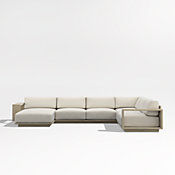 Mallorca Wood 2-Piece Left-Arm Chaise Outdoor Sectional Sofa with Cast Charcoal Grey Sunbrella ® Cushions