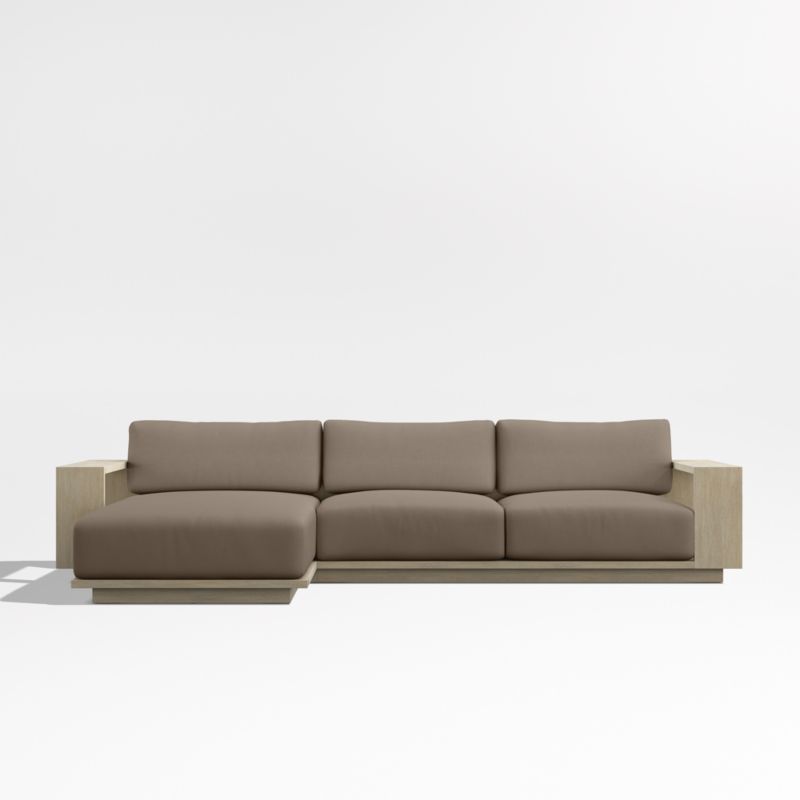 Mallorca Wood 2-Piece Left-Arm Chaise Outdoor Sectional Sofa with Cast Shale Brown Sunbrella ® Cushions