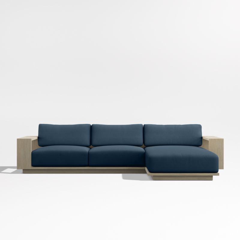 Mallorca Wood 2-Piece Right-Arm Chaise Outdoor Sectional Sofa with Cast Harbor Navy Blue Sunbrella ® Cushions