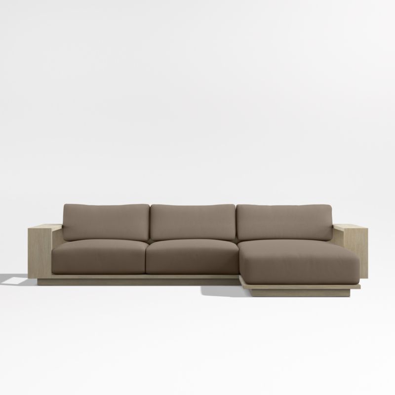 Mallorca Wood 2-Piece Right-Arm Chaise Outdoor Sectional Sofa with Cast Shale Brown Sunbrella ® Cushions