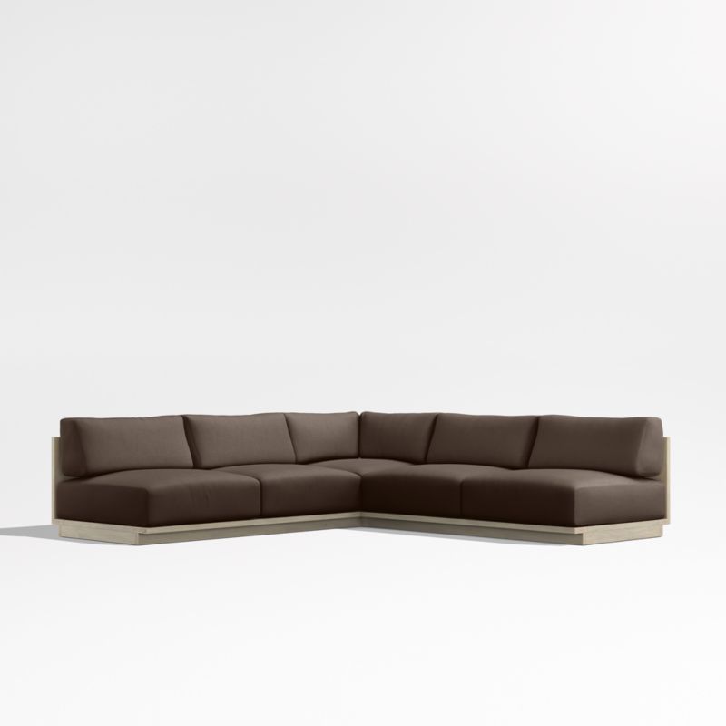 • View Mallorca Wood 3-Piece L-Shaped Armless Outdoor Sectional Sofa with Canvas Java Sunbrella ® Cushions - image 4 of 11