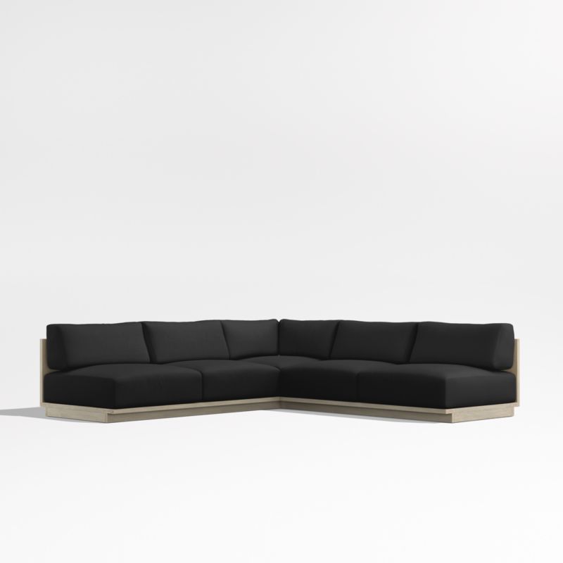 Mallorca Wood 3-Piece L-Shaped Armless Outdoor Sectional Sofa with Cast Charcoal Grey Sunbrella ® Cushions
