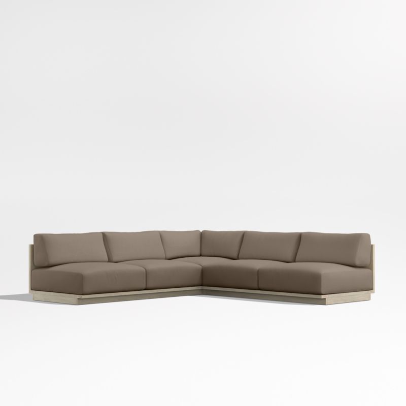 Mallorca Wood 3-Piece L-Shaped Armless Outdoor Sectional Sofa with Cast Shale Brown Sunbrella ® Cushions