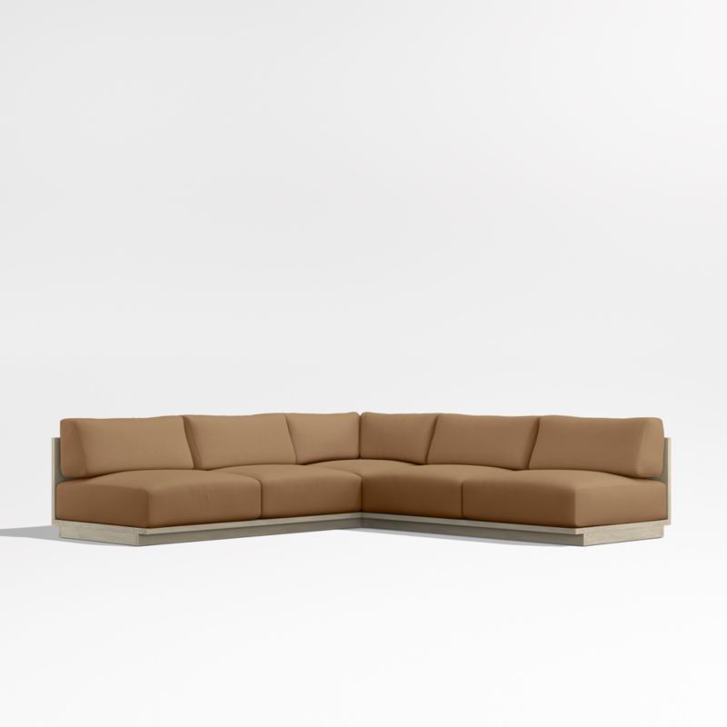 Mallorca Wood 3-Piece L-Shaped Armless Outdoor Sectional Sofa with Cast Teak Brown Sunbrella ® Cushions