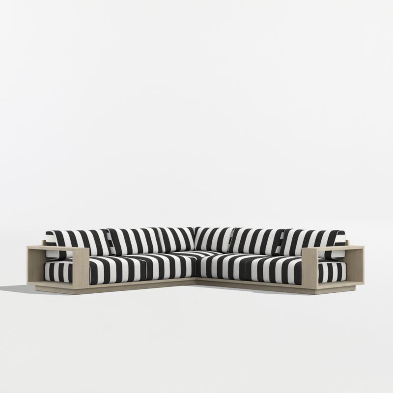 Mallorca Wood 3-Piece L-Shaped Outdoor Sectional Sofa with Black and White Cabana Stripe Sunbrella ® CushionsMallorca 86" Wood Double-Chaise Outdoor Daybed with Black and White Cabana Stripe Sunbrella ® CushionsMallorca Wood 2-Piece Left-Arm Chaise Outdoor Sectional Sofa with Black and White Cabana Stripe Sunbrella ® CushionsMallorca Wood 2-Piece Right-Arm Chaise Outdoor Sectional Sofa with Black and White Cabana Stripe Sunbrella ® CushionsMallorca Wood 3-Piece L-Shaped Armless Outdoor Sectional Sofa with Black and White Cabana Stripe Sunbrella ® CushionsMallorca Wood 4-Piece Left-Arm Chaise U-Shaped Outdoor Sectional Sofa with Black and White Cabana Stripe Sunbrella ® CushionsMallorca Wood 4-Piece Right-Arm Chaise U-Shaped Outdoor Sectional Sofa with Black and White Cabana Stripe Sunbrella ® CushionsMallorca Wood 5-Piece U-Shaped Outdoor Sectional Sofa with Black and White Cabana Stripe Sunbrella ® CushionsMallorca Wood Double-Chaise Outdoor Sectional Sofa with Black and White Cabana Stripe Sunbrella ® Cushions