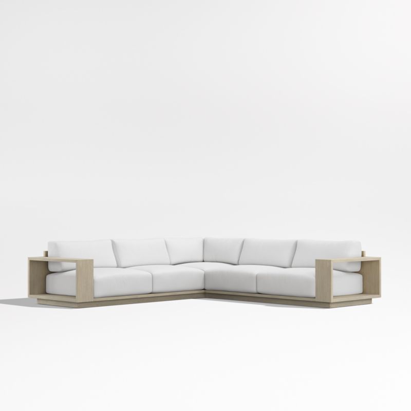 Mallorca Wood 3-Piece L-Shaped Outdoor Sectional Sofa with Canvas White Sunbrella ® Cushions30.25"Hheight115"Wwidth115"DdepthMeasurements are in inches.