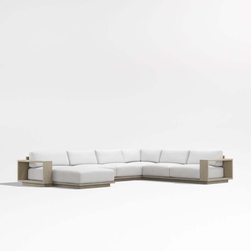 • View Mallorca Wood 4-Piece Left-Arm Chaise U-Shaped Outdoor Sectional Sofa with Canvas White Sunbrella ® Cushions - image 1 of 12