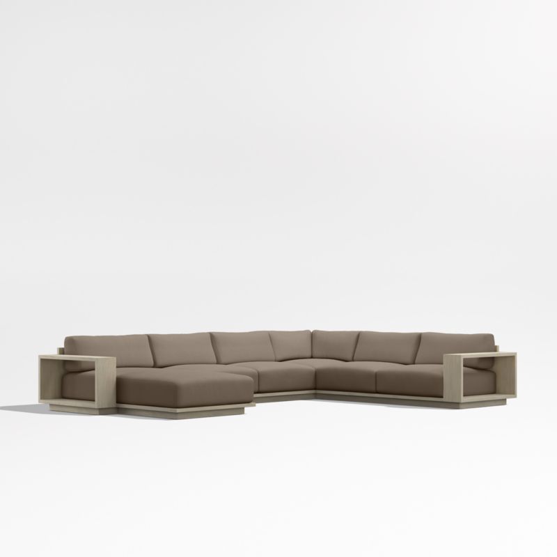 Mallorca Wood 4-Piece Left-Arm Chaise U-Shaped Outdoor Sectional Sofa with Cast Shale Brown Sunbrella ® Cushions