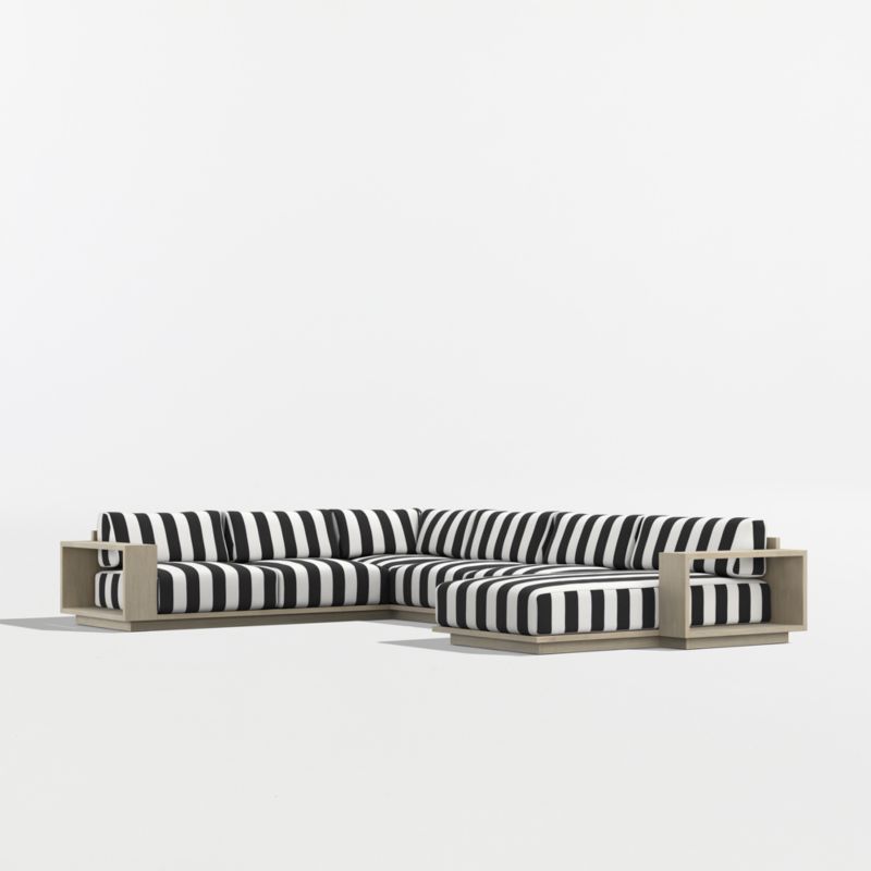 • View Mallorca Wood 4-Piece Right-Arm Chaise U-Shaped Outdoor Sectional Sofa with Black and White Cabana Stripe Sunbrella ® Cushions - image 3 of 10