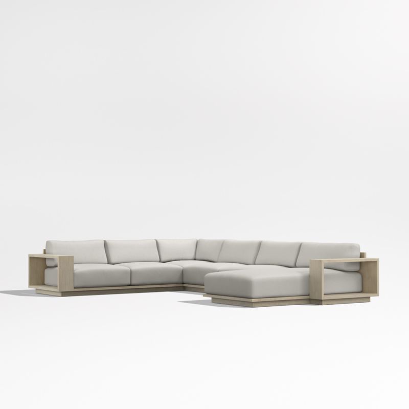 • View Mallorca Wood 4-Piece Right-Arm Chaise U-Shaped Outdoor Sectional Sofa with Cast Silver Sunbrella ® Cushions - image 1 of 12