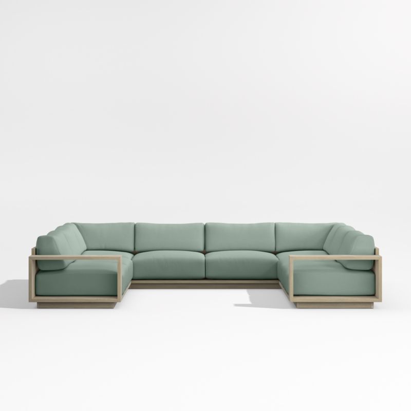Mallorca Wood 5-Piece U-Shaped Outdoor Sectional Sofa with Canvas Spa Blue Sunbrella ® Cushions