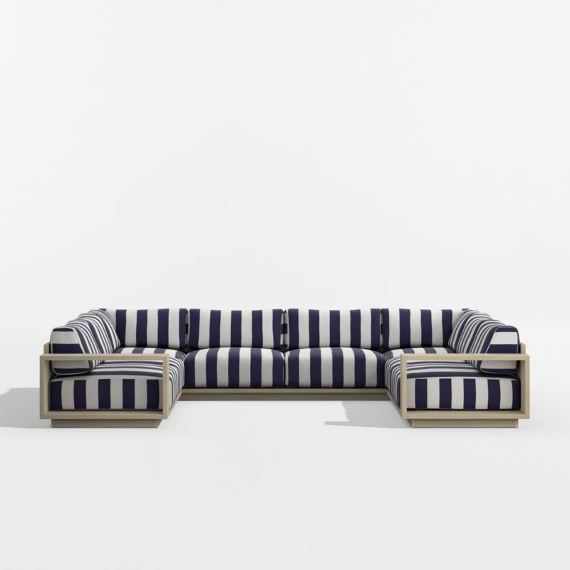 Mallorca Wood 5-Piece U-Shaped Outdoor Sectional Sofa with Navy and White Cabana Stripe Sunbrella ® Cushions30.25"Hheight115"Wwidth144"DdepthMeasurements are in inches.