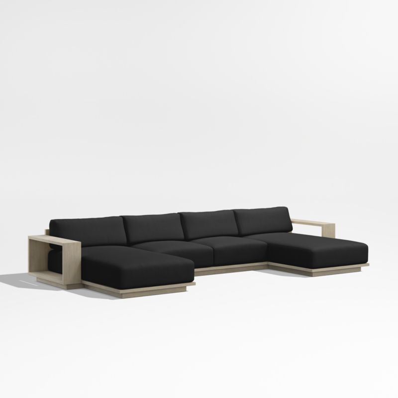 Mallorca Wood Double-Chaise Outdoor Sectional Sofa with Cast Charcoal Grey Sunbrella ® Cushions