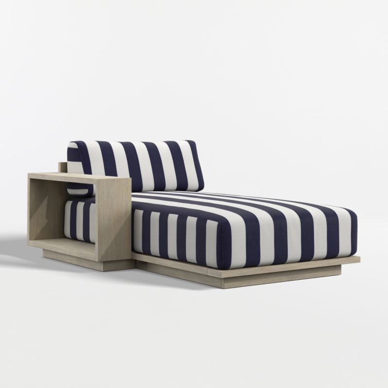 • View Mallorca Wood Left-Arm Outdoor Chaise Lounge with Navy and White Cabana Stripe Sunbrella ® Cushions - image 1 of 4