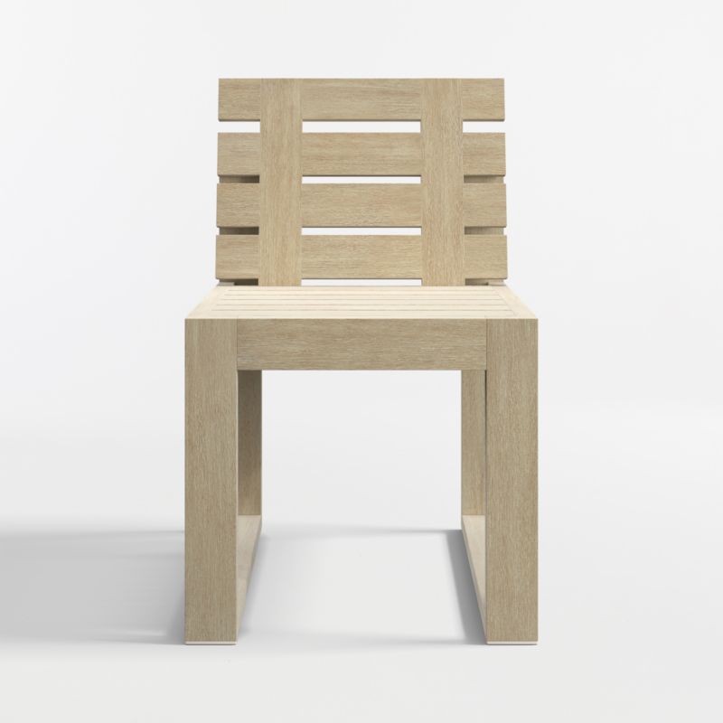 Settle into the enduring coastal comfort of Mallorca. Designed to last season after season, the dining chair showcases the long-lasting durability and natural beauty of eucalyptus wood, which has been painted and wirebrushed to resemble naturally weathered driftwood. The linear frame showcases modern lines and bold geometry for a contemporary look. Layer on softness with a cushion covered in outdoor-friendly ivory fabric or your choice of colors in performance Sunbrella fabric (sold separately).