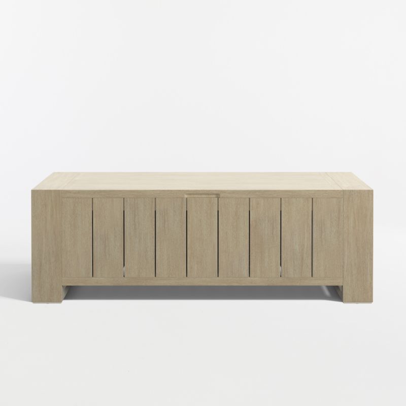 Settle into the enduring coastal comfort of Mallorca. Designed to last season after season, the storage bench showcases the long-lasting durability and natural beauty of eucalyptus wood, which has been painted and wirebrushed to resemble naturally weathered driftwood. The linear frame showcases slatted sides and a solid top that opens to a generous storage area for pillows, throws and other outdoor entertaining essentials.