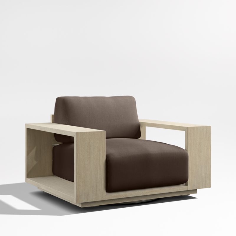 Mallorca Wood Outdoor Lounge Chair with Canvas Java Sunbrella ® CushionsMallorca Wood Outdoor Swivel Lounge Chair with Canvas Java Sunbrella ® Cushions