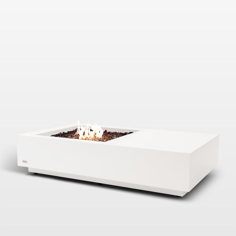 Ideal for entertaining, Manhattan 50 surrounds an inviting, smokeless fire with a clean, modern coffee table. Weather-resistant concrete in bone white shapes crisp corners, a low silhouette that encourages conversation and an offset design that provides enough surface area to host a platter of snacks. Fueled by your choice of propane, natural gas or ethanol, the rectangular fire table warms and illuminates your outdoor space any time of year.