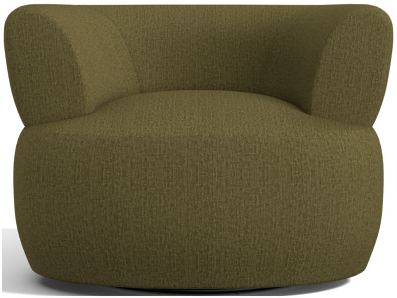 A little bit modern, a little bit vintage. Margaux's voluminous design beckons a cozy retreat with its bold curves and generously padded cushioning. Fully upholstered in an ultrasoft chenille the color of fine cognac, the plush accent chair swivels to follow the conversation or get a 360 view of the room. Margaux is also available in more than 200 fabric options.
