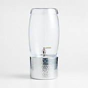 With its clean looks and generous capacity, the glass Marin dispenser is a natural for parties, serving cold beverages with an easy-to-use spigot. Its sleek, cap-like lid allows for easy refills of ice or drinks. Shaped by hand out of strips of ash, the Madeira stand showcases the beauty of natural wood as it elevates the container at the right height for dispensing beverages.