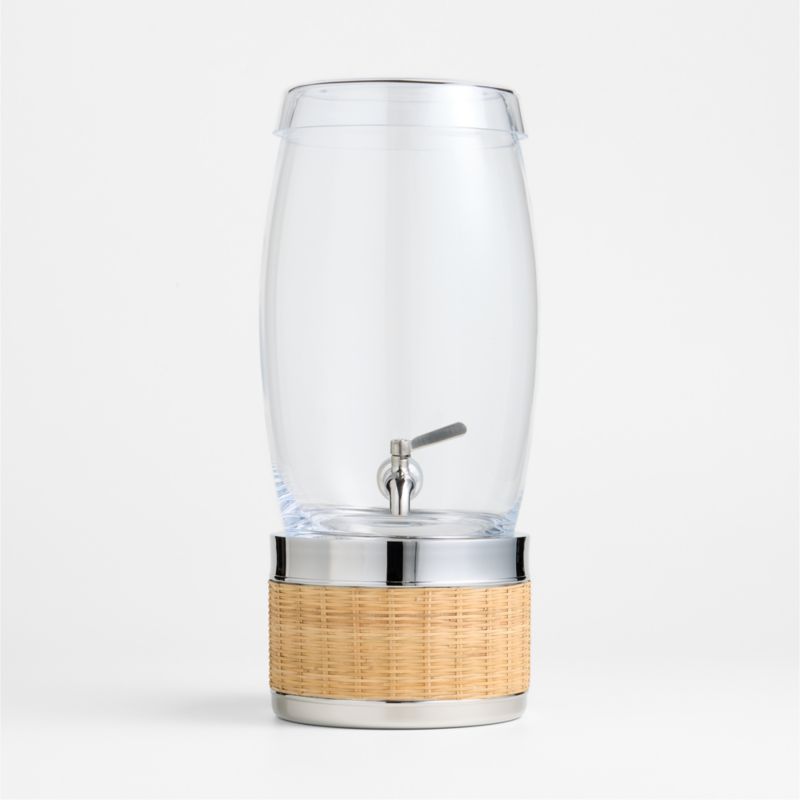 With its clean looks and generous capacity, the Marin dispenser is a natural for parties, serving cold beverages with an easy-to-use spigot. Its sleek, cap-like lid allows for easy refills of ice or drinks. Wrapped by hand in natural woven rattan wicker, the stainless steel Amici stand masterfully mixes materials as it elevates the container at the right height for dispensing beverages.