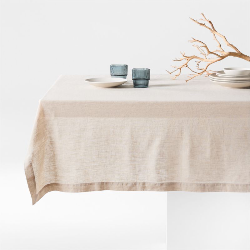 Give your table an elegant foundation with our Marin tablecloth made of quality European linen that's exceptionally soft and supple. The natural-hued tablecloth pairs effortlessly with dinnerware in a range of hues. Each neutral linen tablecloth is pre-washed for extra softness and tailored with generous and mitered corners to keep the look crisp and neat.