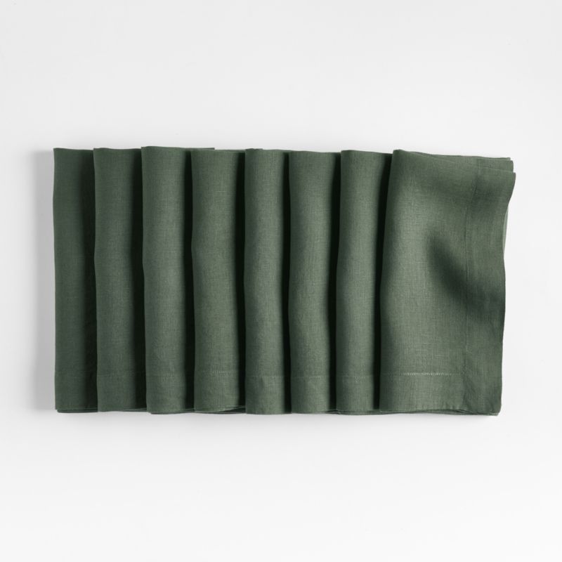 Our lightweight, pure linen cloth napkin unfolds to a generous 22-inch square in pine green. Pre-washed for extra softness, the cool evergreen napkin pairs with our white, black or neutral dinnerware to set a fresh table. Tailor-finished with a generous hem and mitered corners—diagonal seaming that creates crisp corners—the machine-washable linen napkin is a Crate & Barrel exclusive.