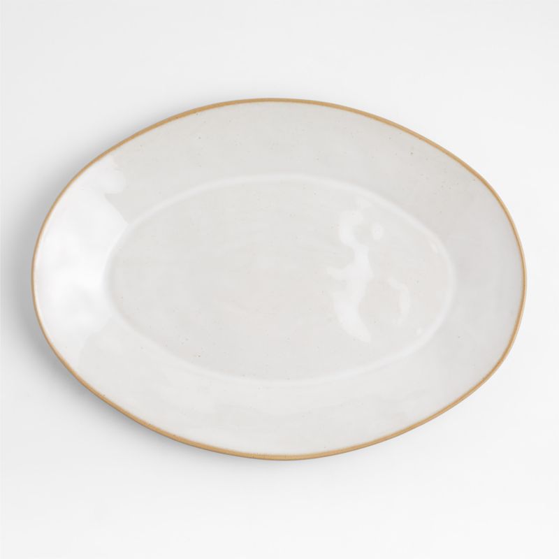The newest evolution of our coveted Marin dinnerware crafts the collection's signature organic curves with Ecogres®—stoneware made of 90% recycled clay. The oval serving platter showcases a subtly shiny white glaze that's unique to each piece and allows for peeks of the natural earthy clay to show through. Hand-finished by highly skilled artisans in Portugal to make each one unique, the oval platter with a freeform rim stands up to everyday use and dishwasher cleaning. It's an artisanal serving piece designed to be lived with—whether for weekend bagels or elegant dinner parties—day in and day out.